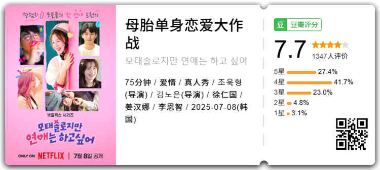打造出恋综新标竿《单身即地狱》系列的Netflix,这次将带来风格新颖、口味独特的恋爱真人秀,展现那些恋爱经验值为零的参加者,虽然笨拙但格外可爱的真实恋爱挑战。